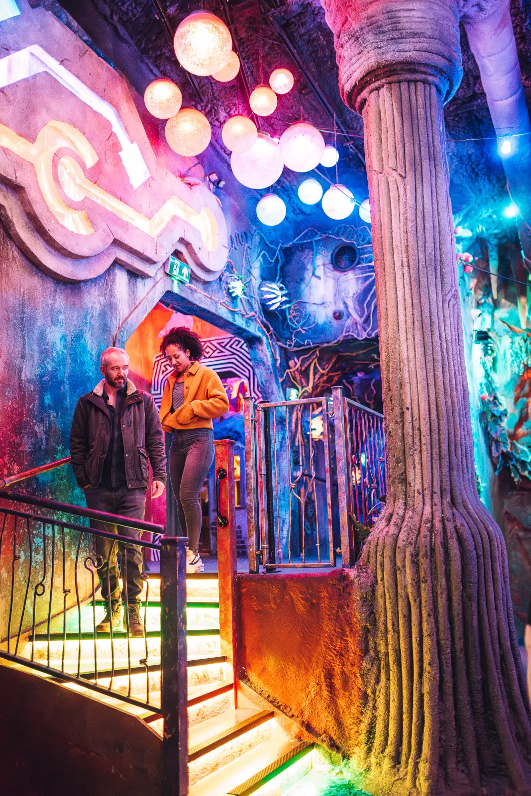 Step into Wake The Tiger, where you can explore over 40 mind-bending immersive spaces. Wander through surreal art installations, full 360-degree interactive sets, encounter robots, and even a slide! All across two spectacular levels designed to spark your curiosity and ignite your imagination.